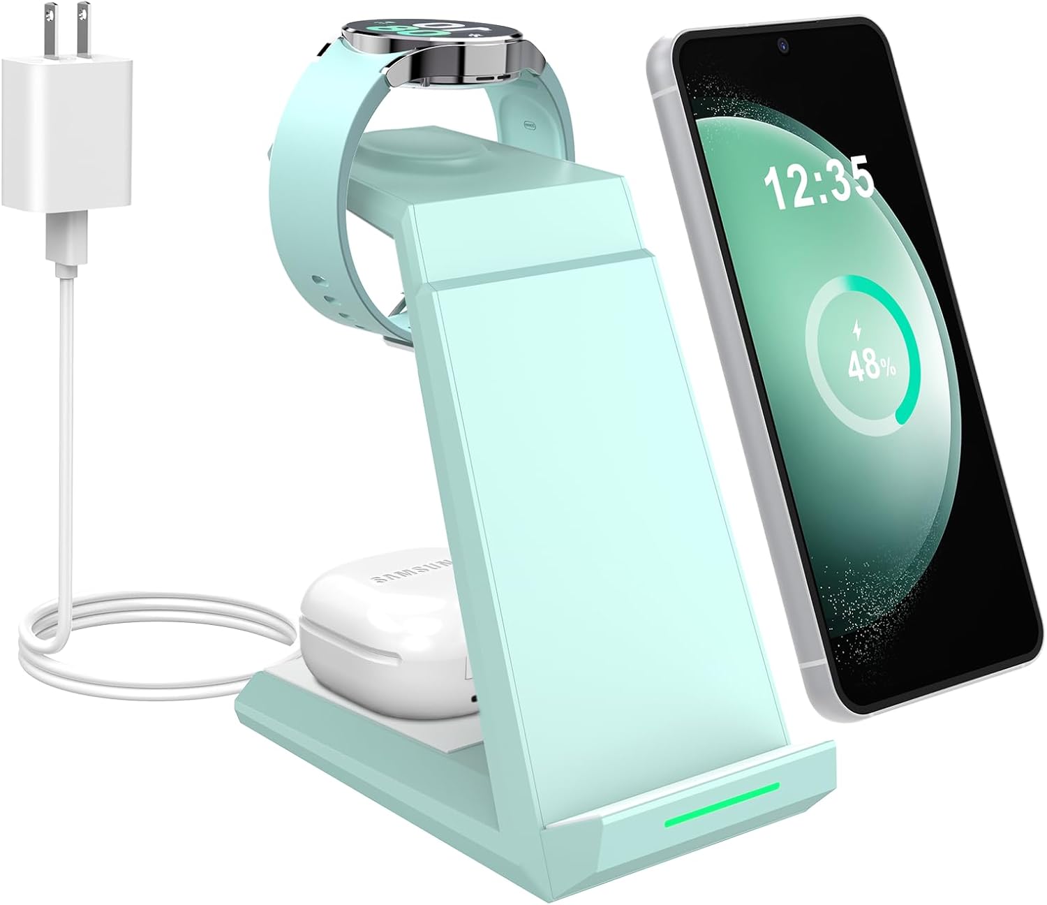 Wireless Charger for Samsung 3 in 1 Charging Station for Multiple Devices, Fast Charger Stand for Galaxy S25 S24 S23 Ultra S22 S21 Z Flip Fold 4,Galaxy Watch 6/5/5 Pro/4/3, Galaxy Buds 2 Pro